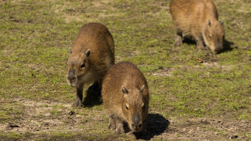 Originárias da América do Sul, as capivaras são os maiores roedores do mundo. Elas habitam principalmente áreas pantanosas e zonas ribeirinhas, onde suas habilidades de natação são uma vantagem essencial para a sobrevivência. Essas criaturas são famosas por viverem em grupos sociais complexos e demonstram um comportamento altamente colaborativo dentro do grupo.