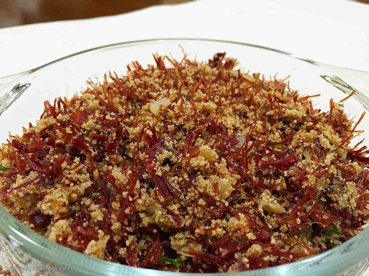 Sua origem está profundamente relacionada com os costumes dos povos indígenas e com a chegada dos colonizadores ao território brasileiro. Antigamente, era necessário encontrar maneiras de conservar a carne sem o auxílio de refrigeração, principalmente devido ao clima quente das regiões interiores do Brasil. O processo incluía cozinhar a carne e depois triturá-la, misturando com farinha de mandioca e temperos para garantir durabilidade e sabor.