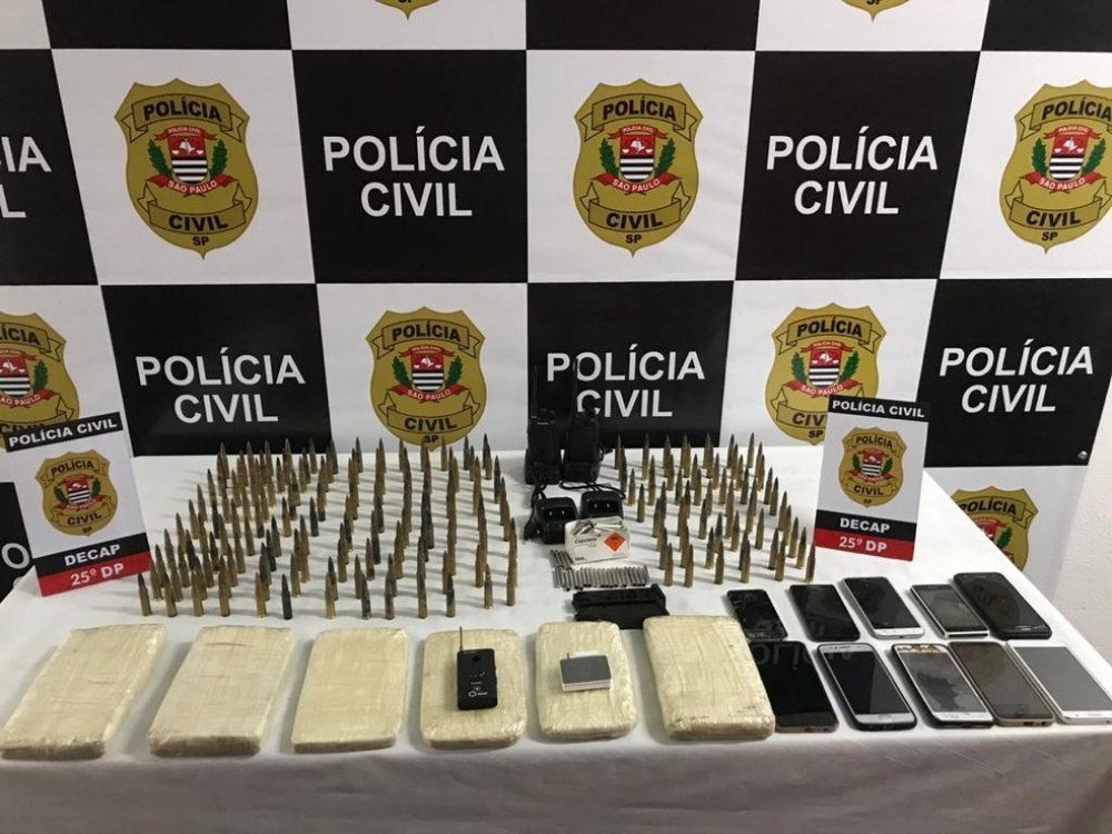 Foram encontradas roupas com sangue, munições de fuzil, celulares, chips de celular, tinta, acionador de explosivos e um furgão.