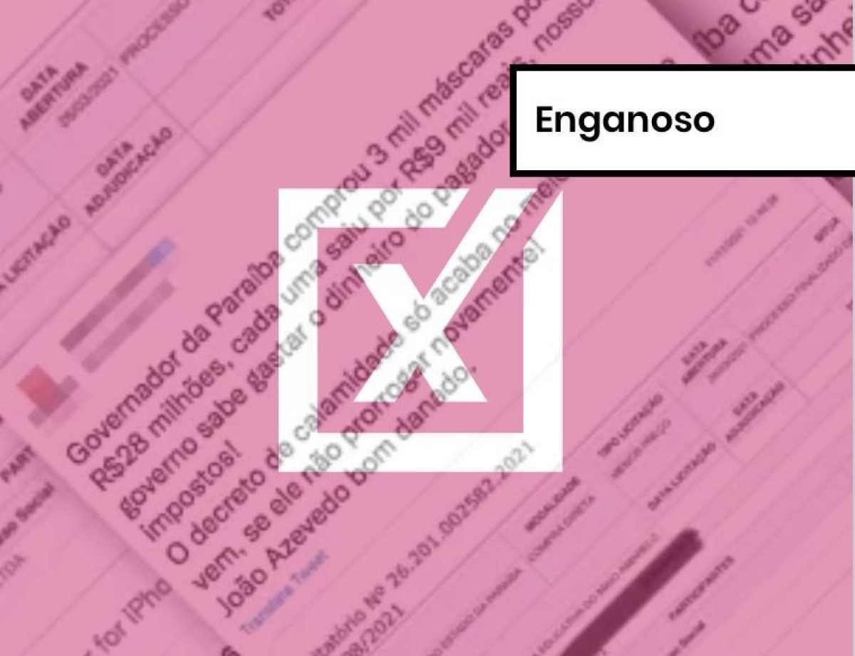 Compra de máscaras por R$ 28,8 milhões na PB foi erro de cadastro; valor correto é de R$ 9,6 mil