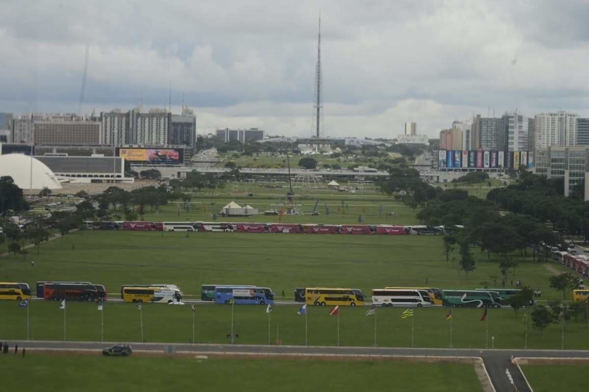 Mais de 200 ônibus estão estacionados na Esplanada em protesto contra PL