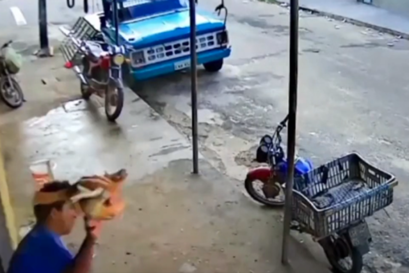 Vídeo: Para impedir roubo, homem atira frango assado em assaltante em Fortaleza
