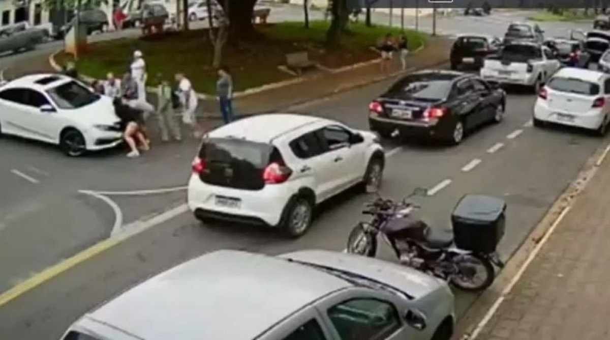 A mulher que estava no carro que havia acabado de passar ela vítima se desespera. O motorista desce do carro ao perceber o acidente. Logo, várias pessoas levantam o carro e retiram a vítima debaixo do veículo, até a chegada da ambulância.