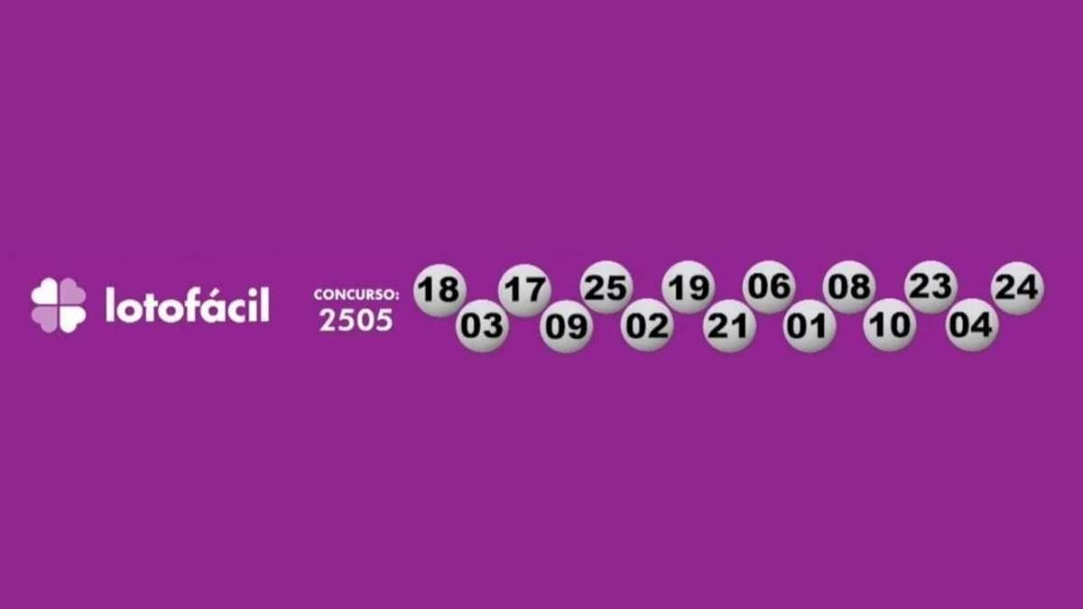 A Lotofácil, que deve distribuir em torno de R$ 1,5 milhão para quem acertar as 15 dezenas, apresentou o seguinte resultado: 01-02-03-04-06-08-09-10-17-18-19-21-23-24-25.
