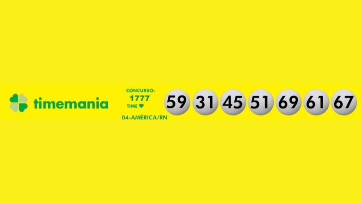 A Timemania, com prêmio previsto de R$ 13 milhões apresentou o seguinte resultado: 31-45-51-59-61-67-69. O time do coração é o América, do Rio Grande do Norte.