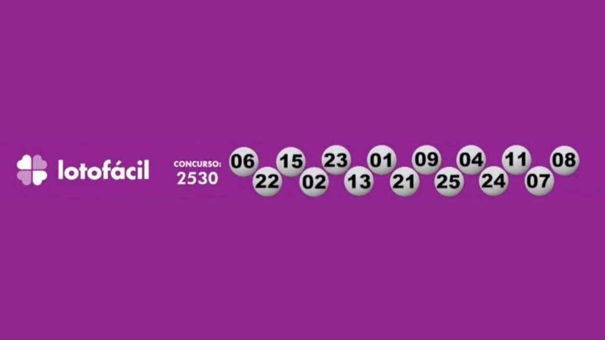 A Lotofácil, que deve distribuir em torno de R$ 5 milhões para quem acertar as 15 dezenas, apresentou o seguinte resultado: 01-02-04-06-07-08-09-11-13-15-21-22-23-24-25.
