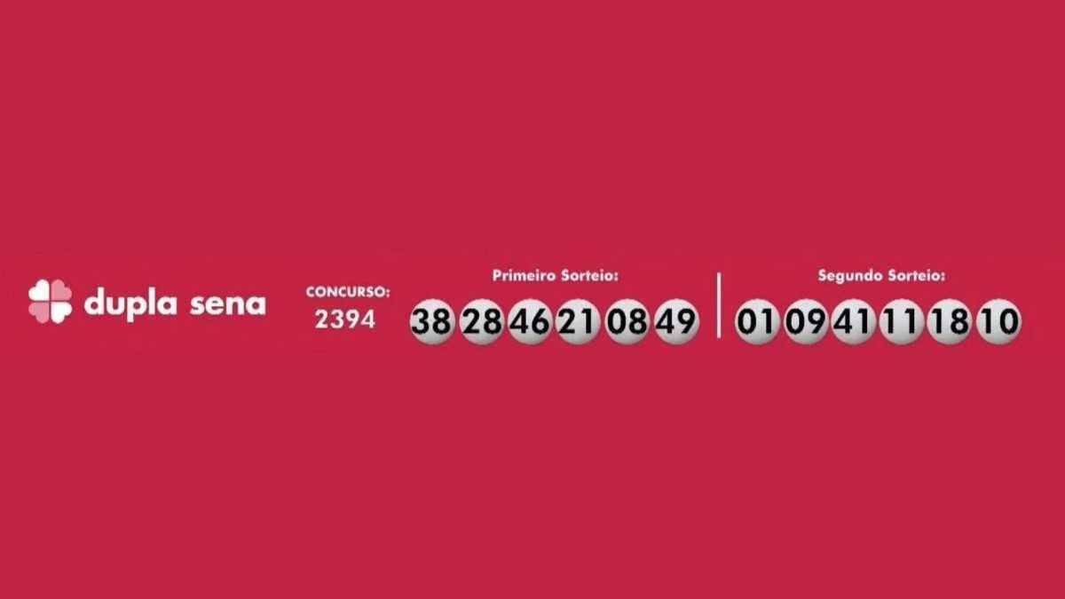 A Dupla Sena teve os seguintes números sorteados: 08-21-28-38-46-49 no primeiro sorteio; 01-09-10-11-18-41 no segundo sorteio. O prêmio previsto é de R$ 615 mil.
