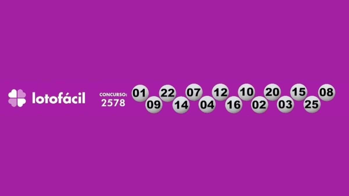 A Lotofácil, que deve distribuir em torno de R$ 1,5 milhão para quem acertar as 15 dezenas, apresentou o seguinte resultado: 01-02-03-04-07-08-09-10-12-14-15-16-20-22-25.