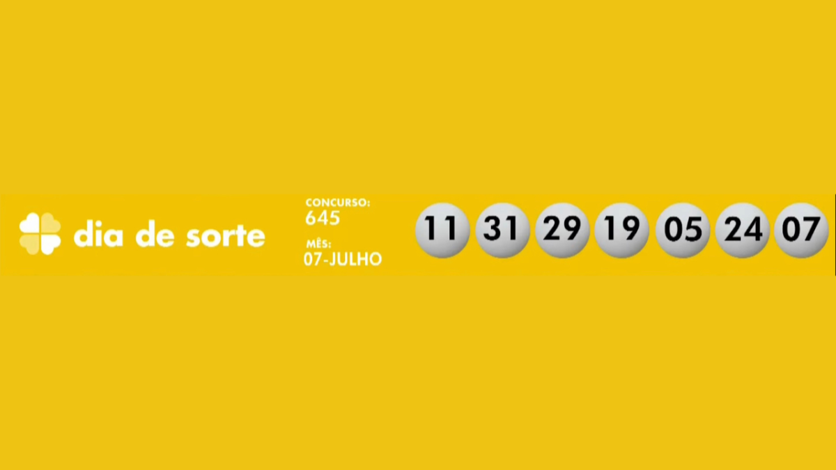 Com prêmio previsto de R$ 150 mil, o Dia de Sorte teve o seguinte resultado: 11-31-29-19-05-24-07. O mês da sorte é julho.