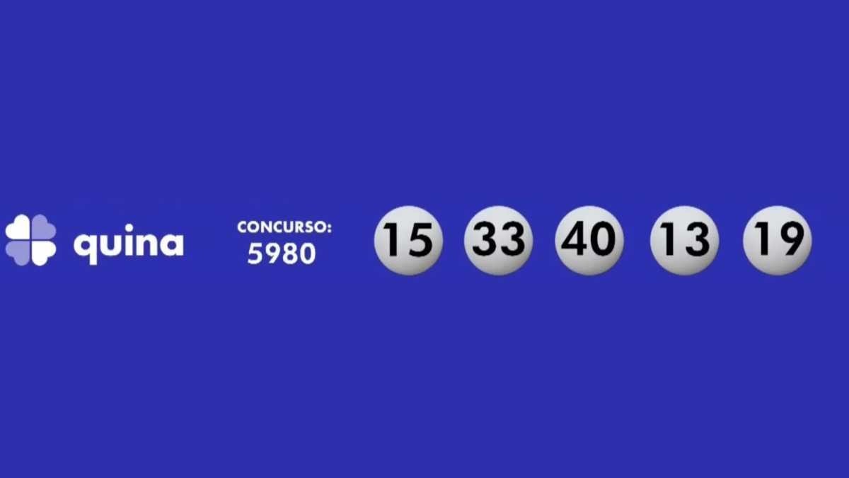 A Quina, com prêmio previsto de R$ 2,1 milhões, teve os seguintes números sorteados: 13-15-19-33-40.