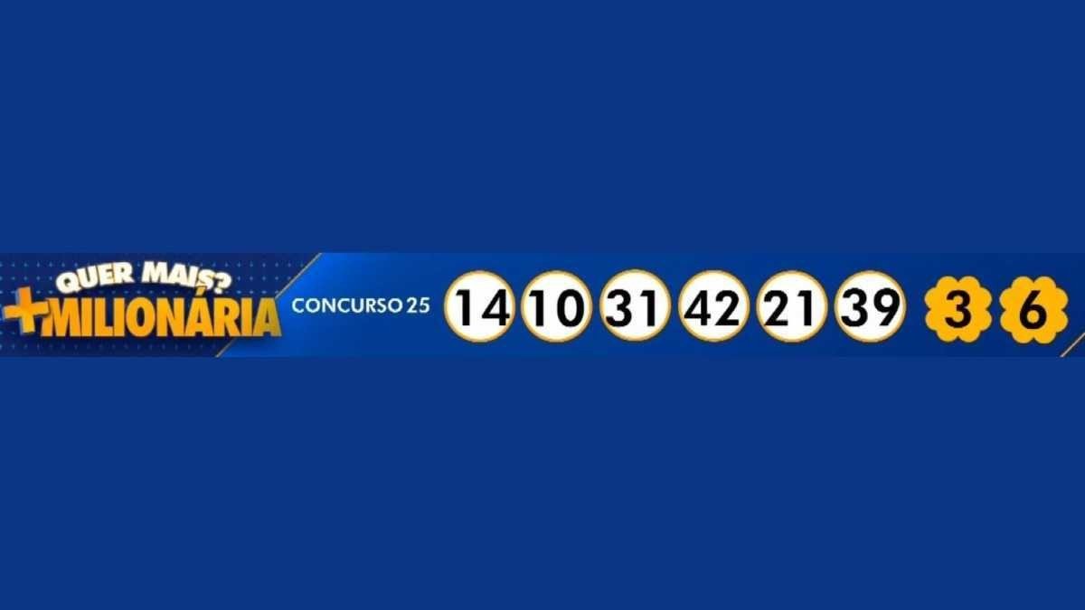 A +Milionária, com prêmio previsto de R$ 18 milhões, teve os seguinte números sorteados na primeira matriz: 10-14-21-31-39-42. Os trevos sorteados foram: 3-6.
