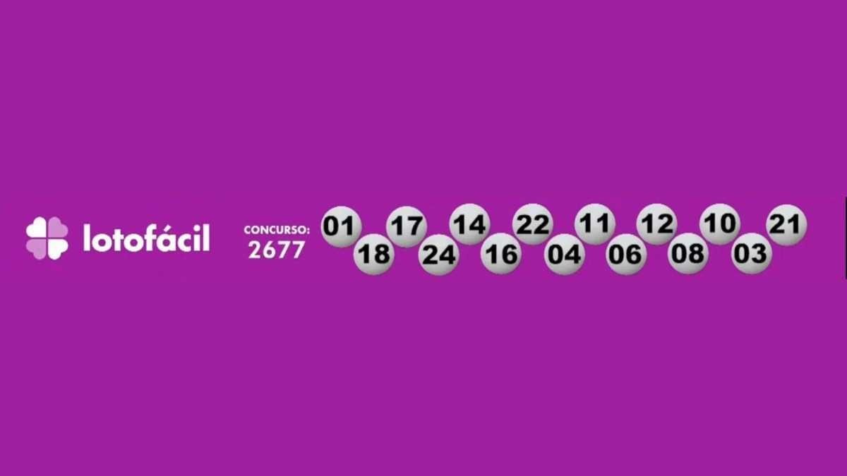 A Lotofácil, que deve distribuir em torno de R$ 1,5 milhão para quem acertar as 15 dezenas, apresentou o seguinte resultado: 01-18-17-24-14-16-22-04-11-06-12-08-10-03-21.