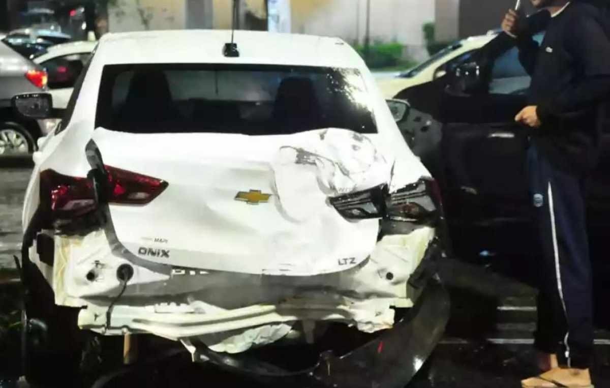 O vídeo que circula nas redes sociais mostra, inicialmente, um carro com a lataria danificada sendo empurrado pela correnteza. Uma mulher, tia do menino, aparece no meio da via segurando em um poste para evitar que seja derrubada pela força da água.