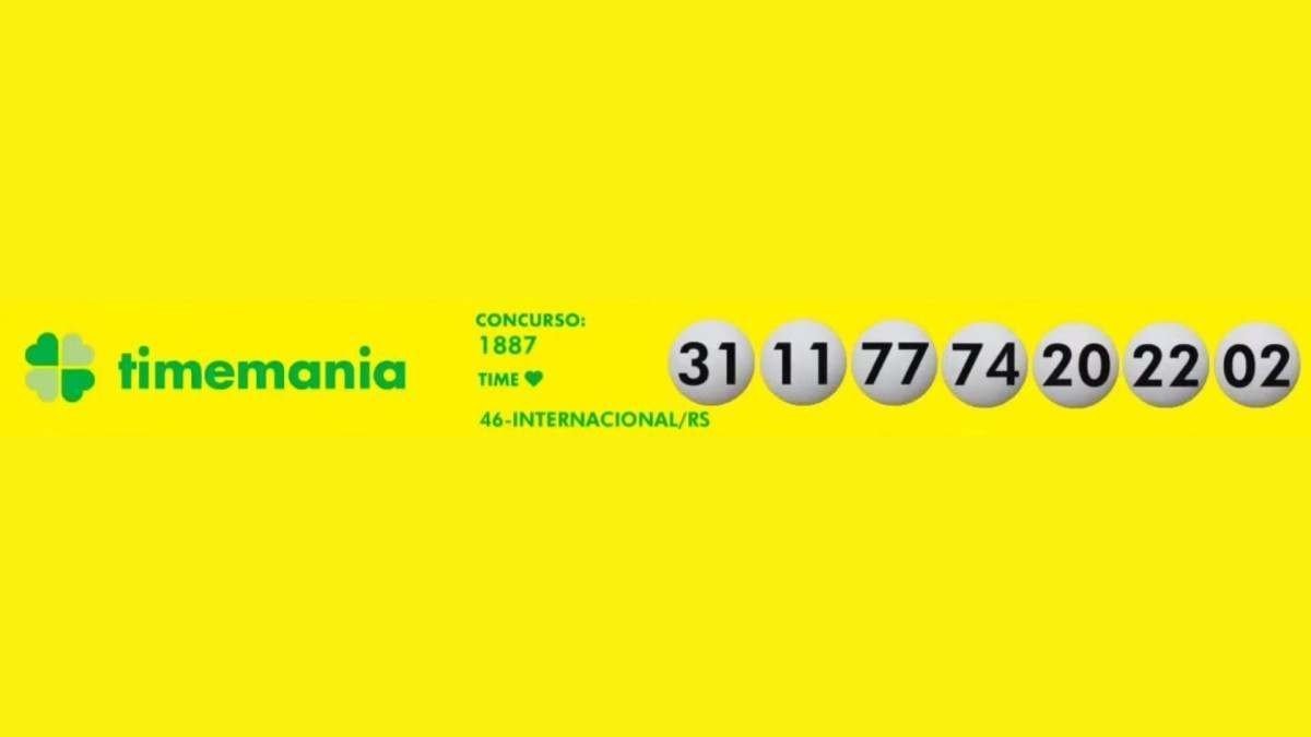 A Timemania, com prêmio previsto de R$ 24,5 milhões apresentou o seguinte resultado: 02-11-20-22-31-74-77. O time do coração é o Internacional, do Rio Grande do Sul.