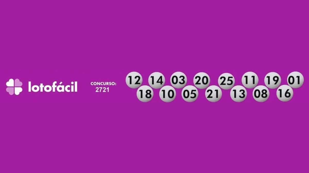 A Lotofácil, que deve distribuir em torno de R$ 1,5 milhão para quem acertar as 15 dezenas, apresentou o seguinte resultado: 01-02-03-04-05-06-08-12-18-20-21-22-23-24-25.
