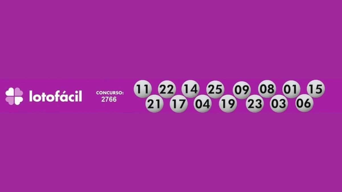 A Lotofácil, que deve distribuir em torno de R$ 1,5 milhão para quem acertar as 15 dezenas, apresentou o seguinte resultado: 11-21-22-17-14-04-25-19-09-23-08-03-01-06-15.