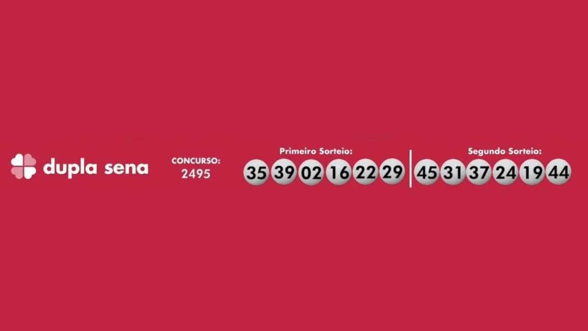 A Dupla Sena teve os seguintes números sorteados: 35-39-02-16-22-29 no primeiro sorteio; 45-31-37-24-19-44 no segundo sorteio. O prêmio previsto era de R$ 1 milhão.