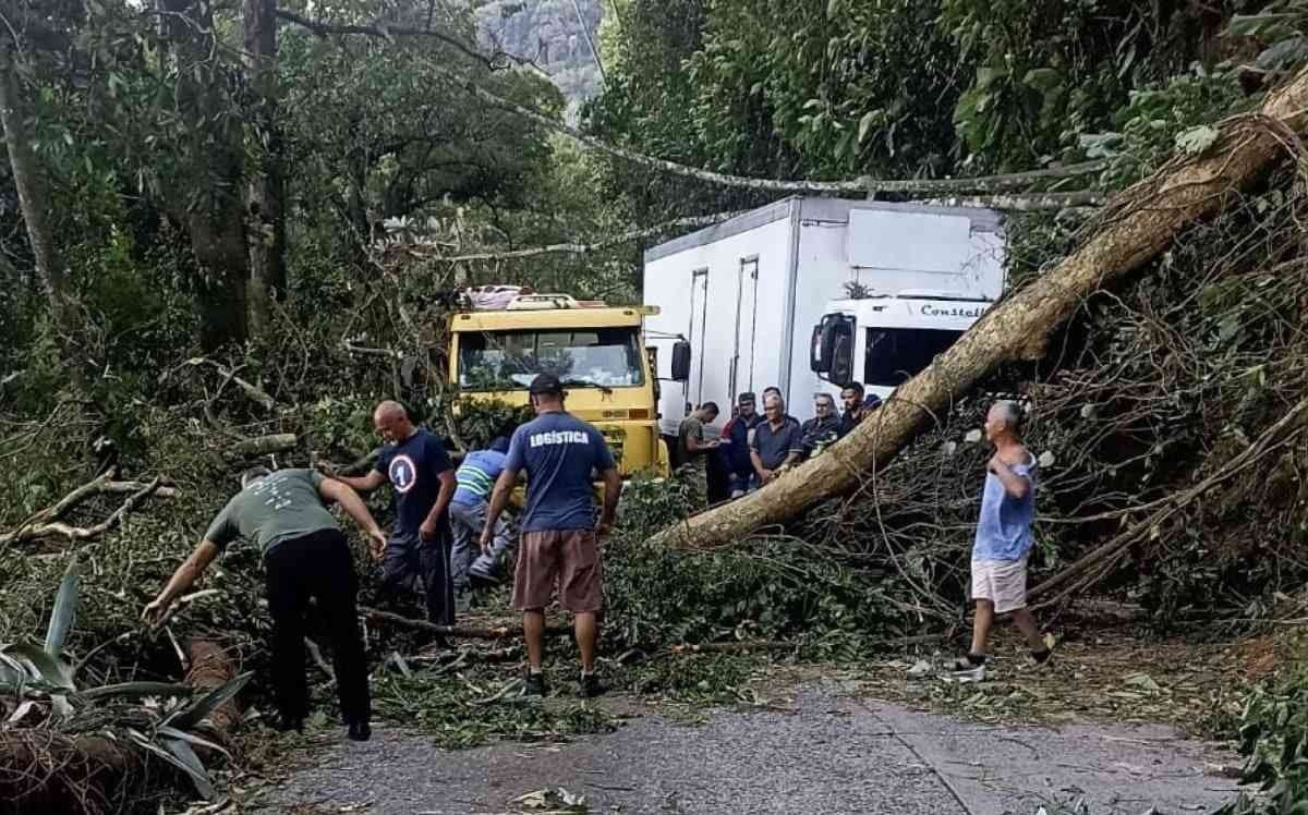 Vendaval provoca queda de árvores e interdita trechos da Serra de Petrópolis