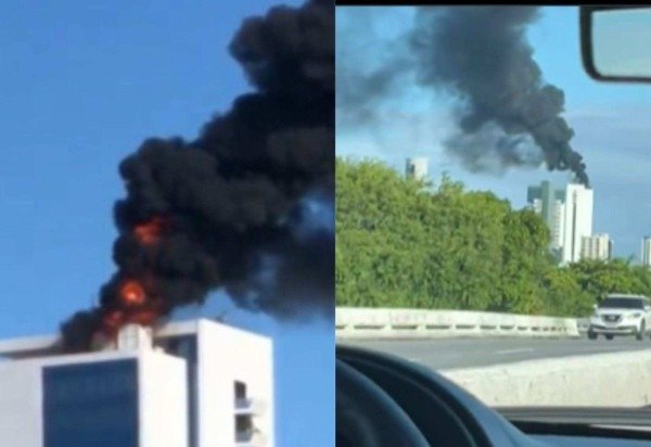 Imagens que circulam pela internet mostram uma fumaça preta saindo da cobertura do edifício International Trade Center (ITC), localizado em um dos locais mais movimentados da região, na Avenida Antônio de Góes.