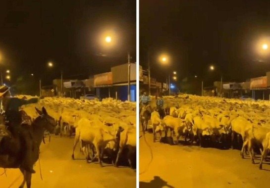 Bois e gados, guiados por vaqueiros montados em cavalos e estalando chicotes, tomam a via durante a madrugada, criando uma cena que chamou atenção e despertou nostalgia em muitos internautas. Segundo as publicações, cerca de 1.400 animais participaram da travessia.
