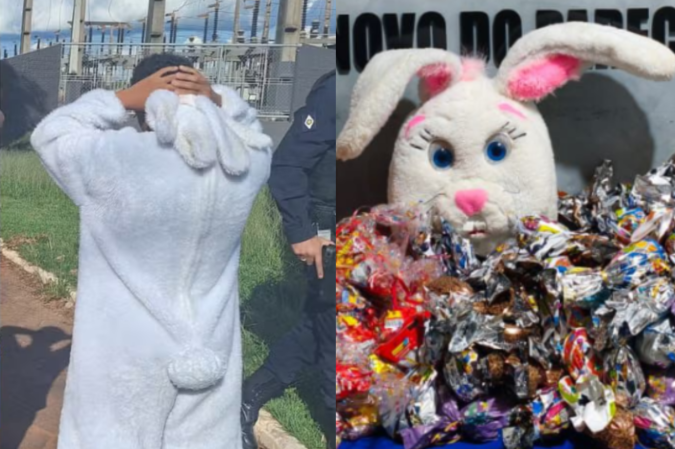 Um adolecesnte vestido de coelho da Páscoa foi apreendido juntamente com outro menor de idade enquanto distribuíam ovos de chocola na cidade de Campo Novo de Parecis (MT). Um adulto que estava com os jovens também foi preso pela Polícia Militar do estado. Segundo as autoridades, a ação era um modo da facção Comando Vermelho (CV) expandir as atividades na região.