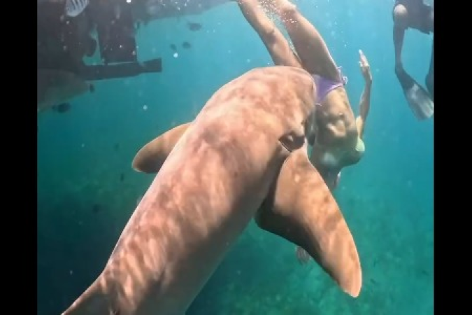 Um novo vídeo mostra o momento em que a advogada e surfista Tayane Dalazen, natural de São Paulo, é mordida por um tubarão lixa enquanto praticava snorkel em Fernando de Noronha. Nas imagens, publicadas pela própria advogada nas redes sociais, é possível ver o instante em que o animal atinge a perna direita da turista de um outro ângulo.