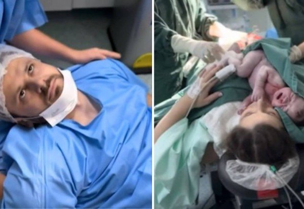 A situação ocorreu em Criciúma, em Santa Catarina. Nas imagens, o pai aparece caído no chão enquanto uma profissional abana seu rosto. Outros dois membros da equipe elevam suas pernas para ajudar na circulação sanguínea. Em seguida, o vídeo mostra a mãe no primeiro contato com a recém-nascida.
