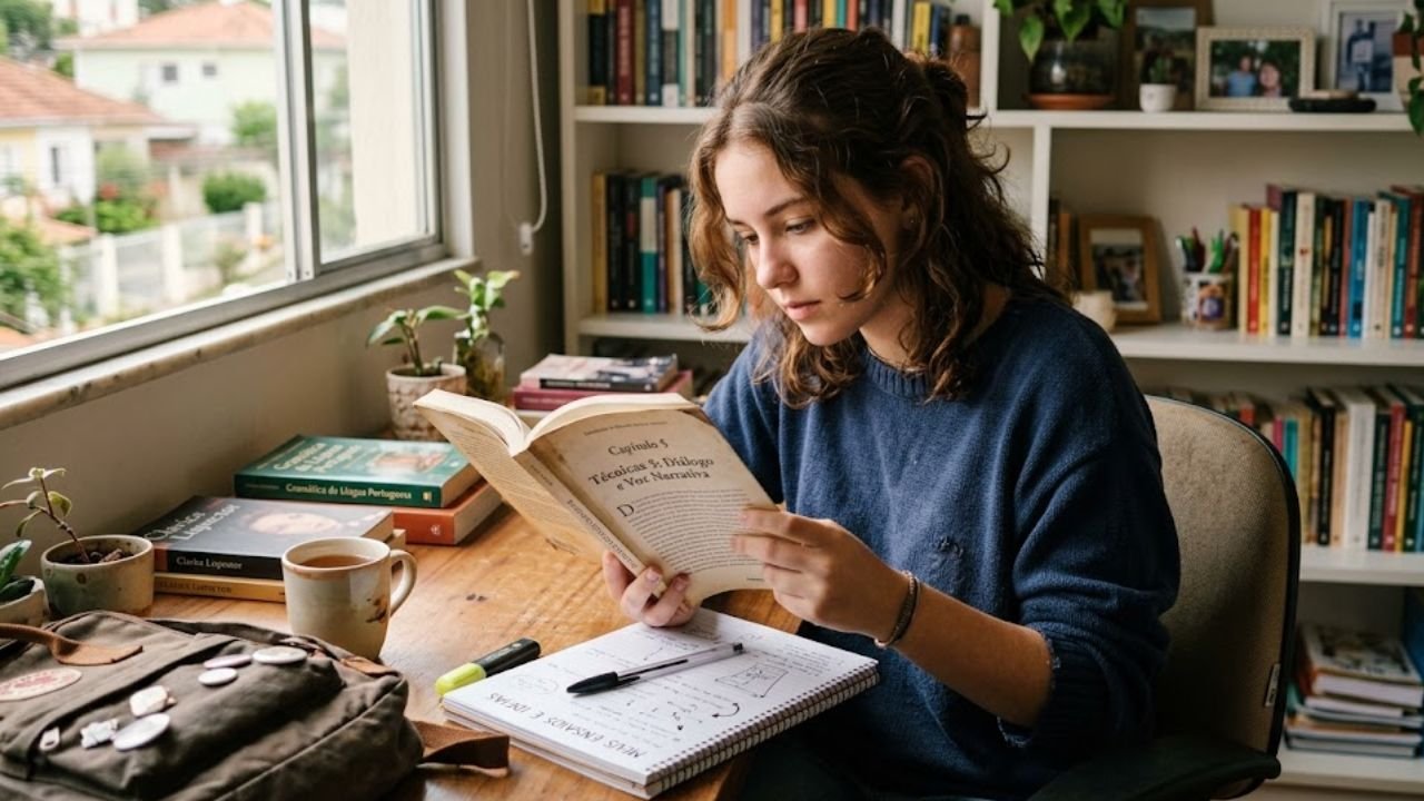 Além dos títulos focados em técnica, a leitura de ficção e ensaios variados é o que garante a variedade linguística necessária para uma boa comunicação. Manter uma lista de leitura ativa ajuda o cérebro a automatizar regras de pontuação e concordância, reduzindo erros gramaticais de forma orgânica e constante ao longo do ano letivo.