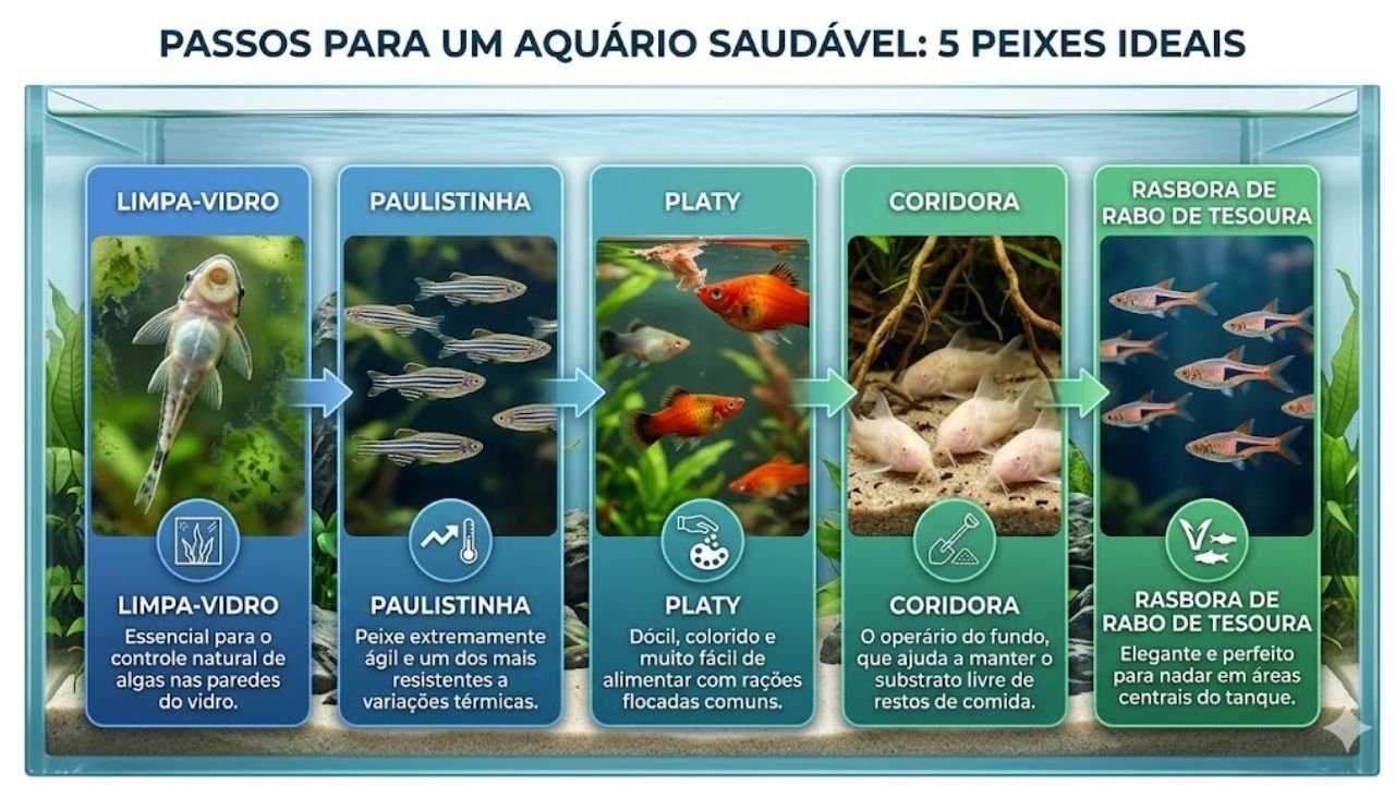 Estas espécies formam a base perfeita para quem deseja diversidade sem a necessidade de equipamentos profissionais caros ou trocas de água exaustivas. Atenção: verifique sempre a compatibilidade de pH entre as espécies escolhidas para garantir que todos os habitantes do seu pequeno mundo aquático vivam em perfeita simbiose.