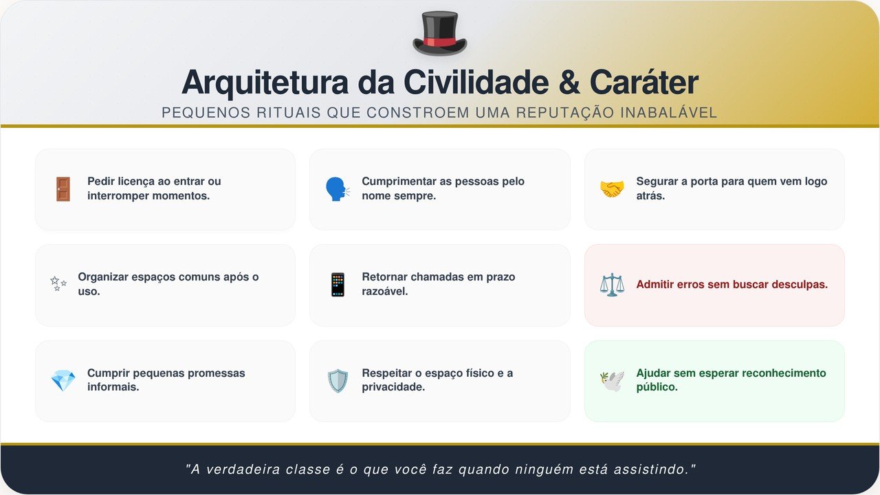Pequenas interações, como agradecer por um serviço simples ou manter o contato visual com quem nos atende, constroem uma reputação de respeito autêntico. A falta de educação com prestadores de serviço costuma ser um sinal de alerta sobre inseguranças profundas e necessidade de validação através do poder. A verdadeira nobreza reside na simplicidade do tratamento igualitário constante.