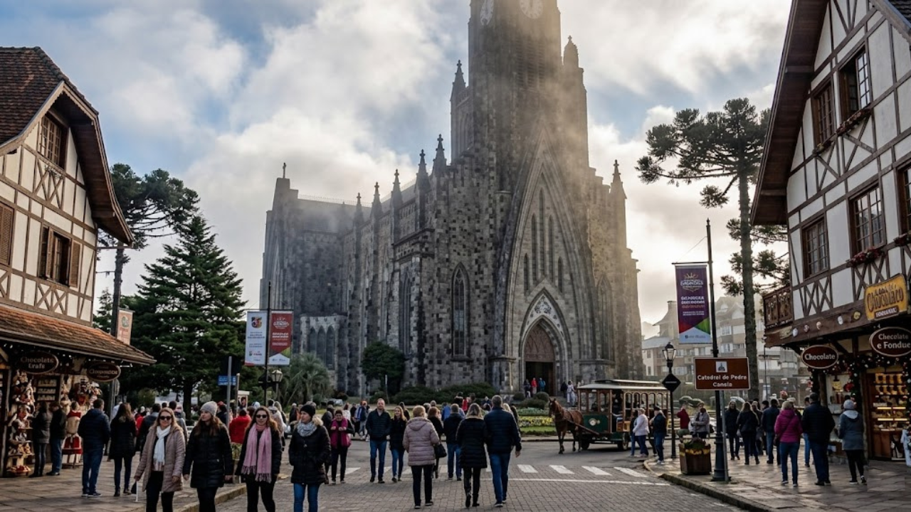Canela reúne cascatas que tiram o fôlego, uma catedral que se vê de longe, fondue no frio da serra e parques para todos os ritmos. A cidade tem personalidade própria e entrega experiências que Gramado, logo ali do lado, não reproduz.