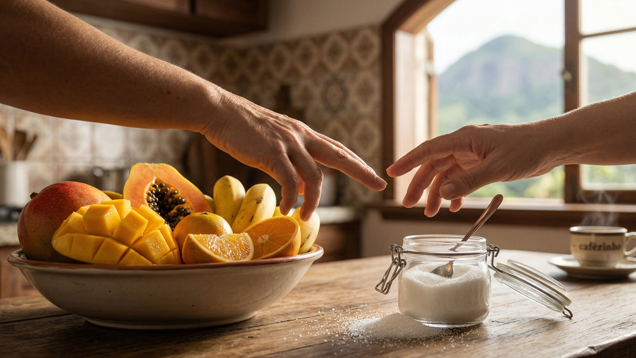 A frutose encontrada na polpa dos alimentos vem acompanhada de uma matriz complexa que regula sua absorção pelo organismo de modo gradual. Diferente do produto industrializado, que entra na corrente sanguínea de forma imediata, esse nutriente natural é processado com lentidão. Ter essa clareza permite aproveitar o sabor adocicado sem causar picos desnecessários de insulina no sistema.
