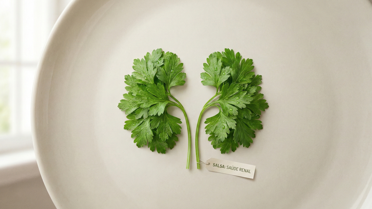De acordo com um estudo académico publicado na National Library of Medicine (PubMed), a salsa atua na inibição da bomba de sódio e potássio, o que valida o seu papel no aumento do volume urinário e na redução da retenção de líquidos de maneira orgânica.