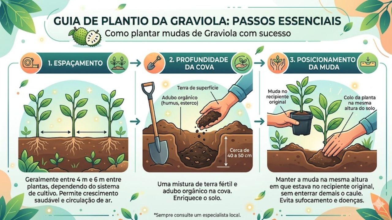 Para começar, é importante escolher bem as sementes ou mudas, dando preferência às que vêm de viveiros confiáveis, com aparência firme e sadia. A graviola se adapta melhor a climas quentes e úmidos, com temperaturas médias entre 22 °C e 30 °C, e não gosta de frio intenso ou geadas, que podem prejudicar o desenvolvimento da planta.