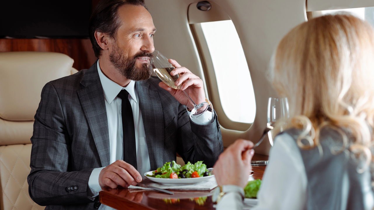 Pessoa comendo no avião – Créditos: (depositphotos.com / DenisDenisenko)