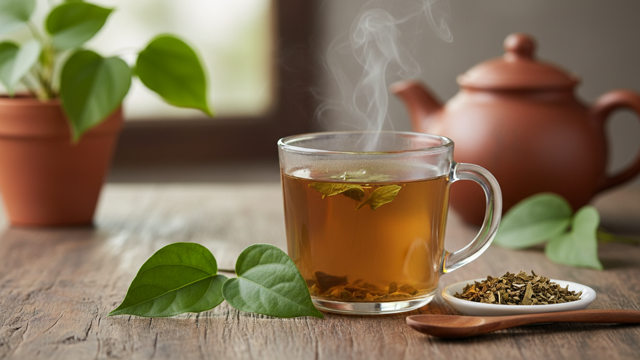 - Chá de guaco preparado com folhas frescas ou secas em água quente.