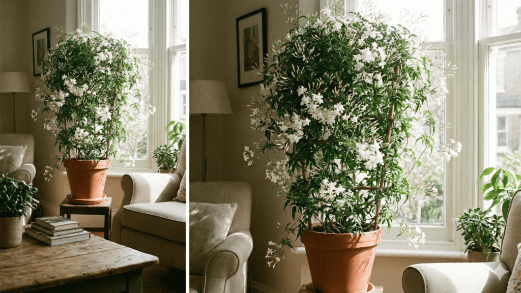 Para áreas pequenas, versões arbustivas e de menor crescimento funcionam melhor, pois vão bem em vasos médios com boa drenagem. Já para quem quer cobrir muros, pérgolas ou grades, os jasmins trepadores são os queridinhos, formando um “muro verde” florido e cheiroso ao longo do ano.