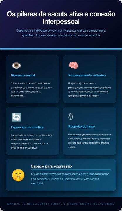 A observação atenta foca em microexpressões faciais e na postura corporal que revelam a verdade por trás das palavras formais. Captar esses sinais permite ajustar o discurso para gerar empatia imediata e confiança genuína entre os interlocutores presentes. Entender a linguagem do corpo é fundamental para decifrar sentimentos que nunca são expressos verbalmente em público.
