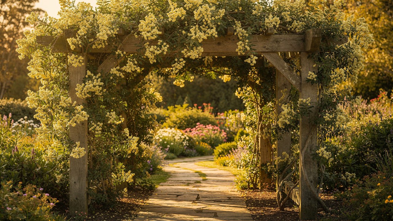 Como usar a roseira Banksia em cercas e pérgolas do jardim
