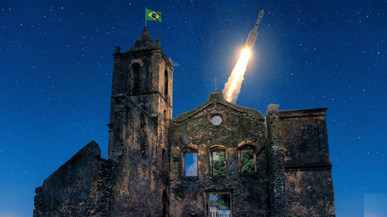 A vila histórica paradoxa onde o passado em ruínas encontra uma base espacial ativa com foguetes no Brasil