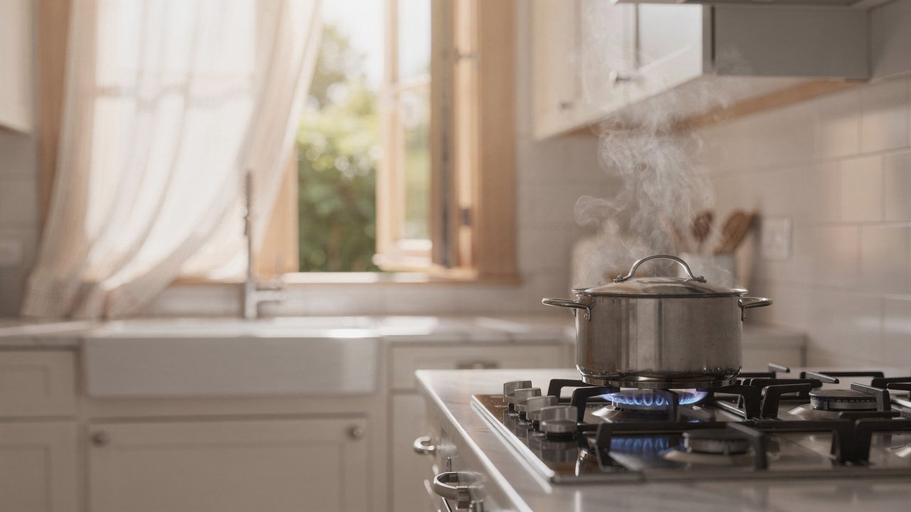 Ao ferver a mistura, você libera um vapor ácido que “caça” e anula a gordura no ambiente. Diferente de desodorizadores que apenas mascaram o problema com perfume, o vinagre realmente limpa o ar, eliminando a fonte do mau cheiro.
