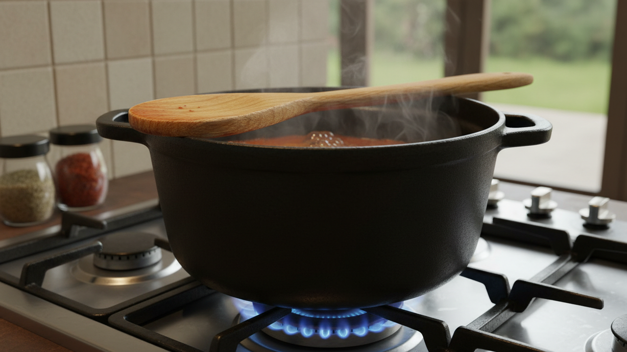 O pesadelo de ver a água do macarrão espumando e sujando todo o fogão tem uma solução analógica que desafia a intuição. Apoiar uma colher de madeira atravessada sobre a boca da panela atua como uma barreira física e térmica que estoura as bolhas de amido antes que elas causem o desastre.