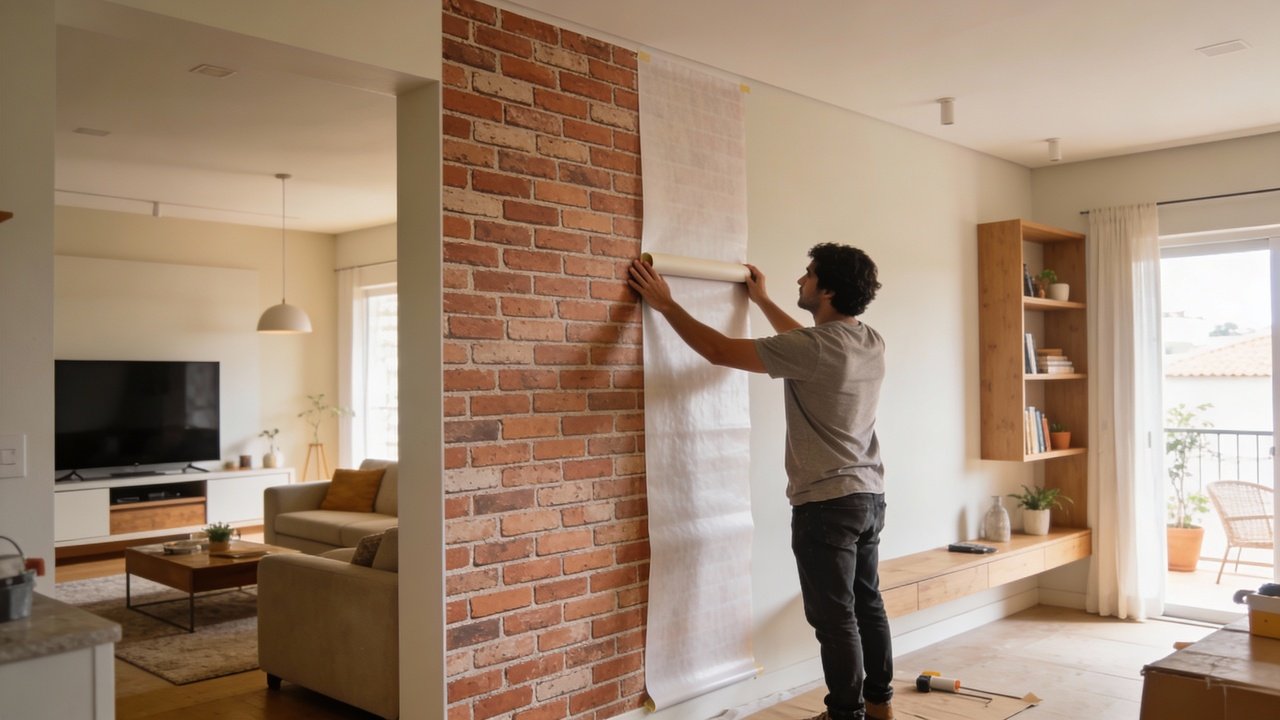 O papel de parede adesivo e as placas 3D autocolantes são os campeões da reforma rápida, pois eliminam a necessidade de cola extra e ferramentas complexas. A tecnologia atual permite texturas que imitam com perfeição materiais nobres como madeira, tijolo aparente e até cimento queimado.