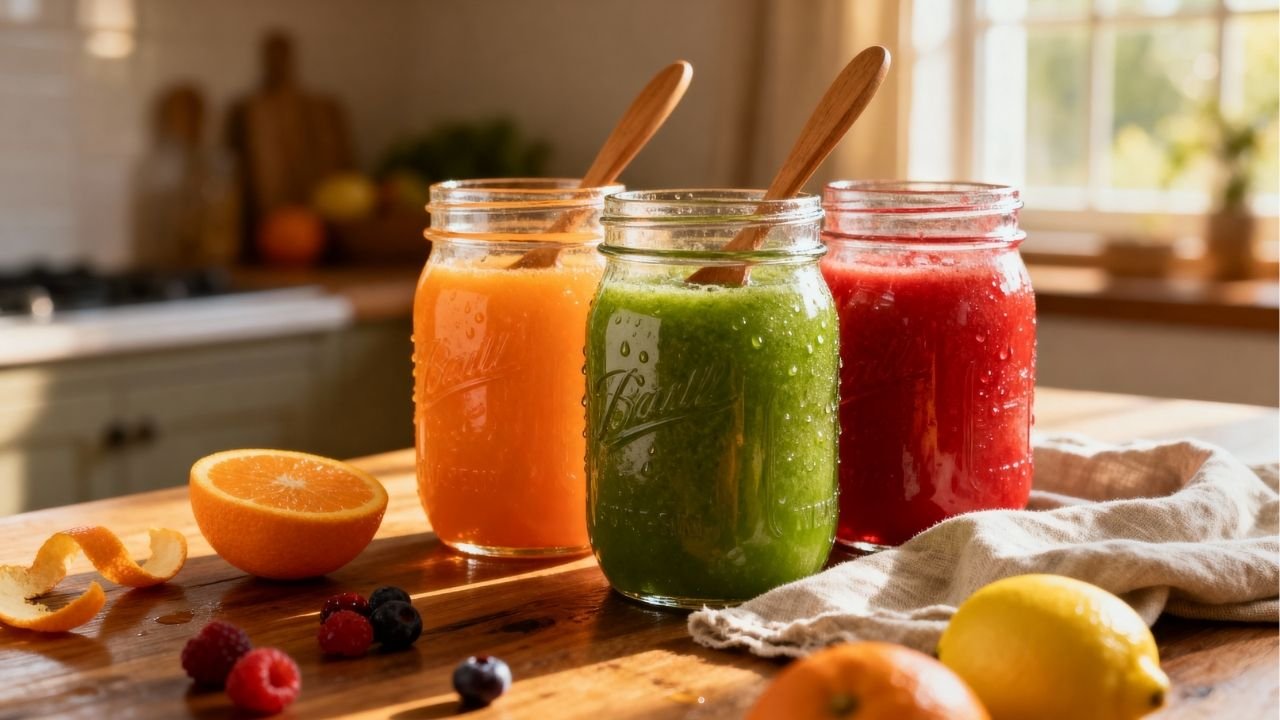 Frutas cítricas, folhas verdes e raízes também oferecem vitamina C, carotenos e outros compostos que participam de reações metabólicas importantes. Quando as receitas mantêm bagaço e polpa, há um bônus de fibras, que favorecem o trânsito intestinal e a eliminação de resíduos, ajudando o corpo a funcionar de forma mais harmoniosa.