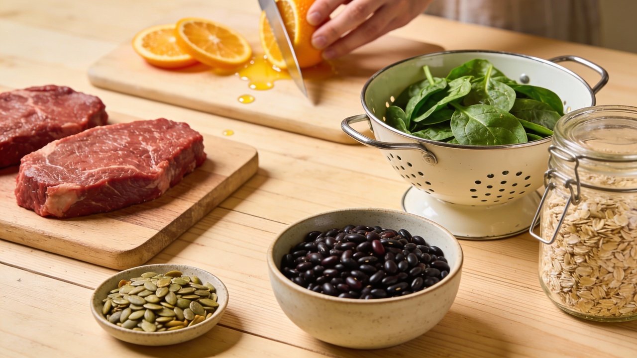 Não basta apenas consumir alimentos com ferro; a forma como eles são combinados na refeição interfere diretamente na absorção. A presença de vitamina C é um dos pontos mais importantes, pois aumenta o aproveitamento do ferro não heme presente em feijões, verduras e cereais, potencializando o efeito da refeição.