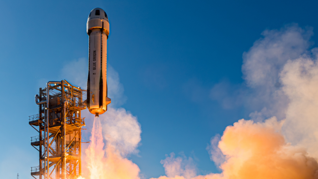 New Shepard lifts off from Launch Site One during NS-27. (October 23, 2024) // Reprodução: Blue Origin (Foto/Divulgação)