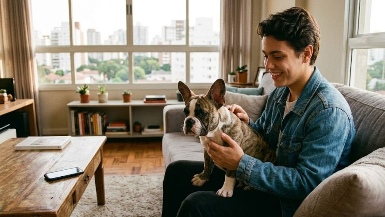 Ponto de atenção: mesmo cães tranquilos como o Bulldog Francês precisam de estímulo sensorial para não desenvolverem ansiedade de separação. Investir em uma rotina previsível de alimentação e passeios cria um ambiente seguro, permitindo que o cão entenda que o apartamento é o seu local de descanso e proteção máxima.