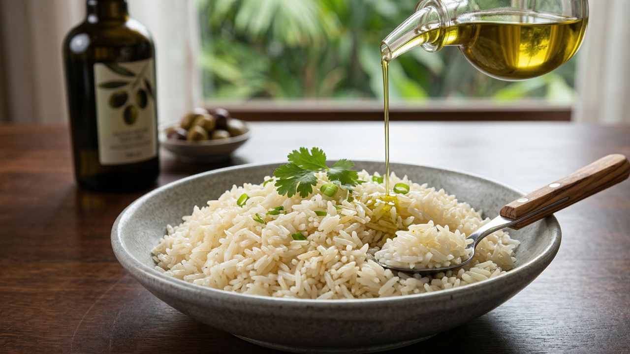 Utilizar o azeite de oliva no refogado inicial ajuda a selar cada grão de forma mais eficiente do que os óleos refinados tradicionais. Essa película protetora impede que o amido se solte excessivamente durante o cozimento, garantindo um resultado extremamente solto. Segundo a Harvard T.H. Chan, o azeite é uma fonte superior de gorduras saudáveis para o organismo humano.