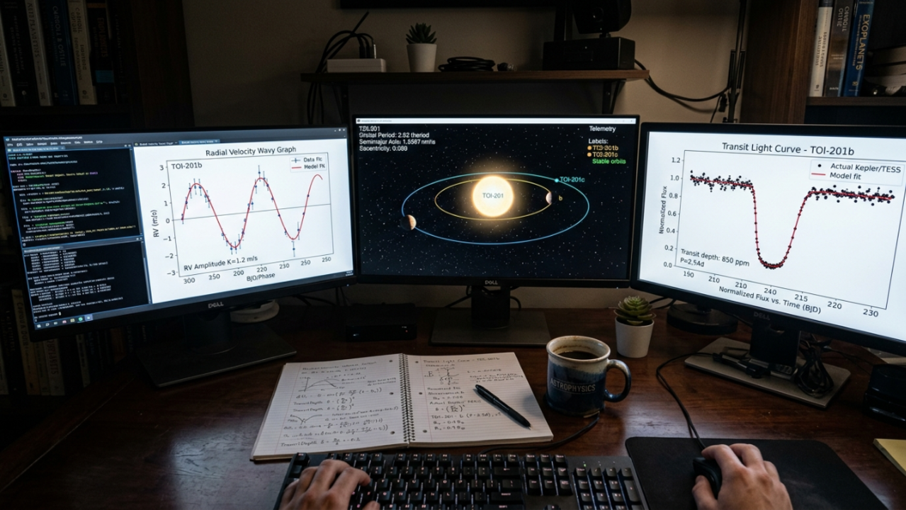Abaixo estão as principais técnicas usadas em conjunto para investigar TOI-201 e refinar os modelos de massa, órbita e interação gravitacional dos corpos do sistema: