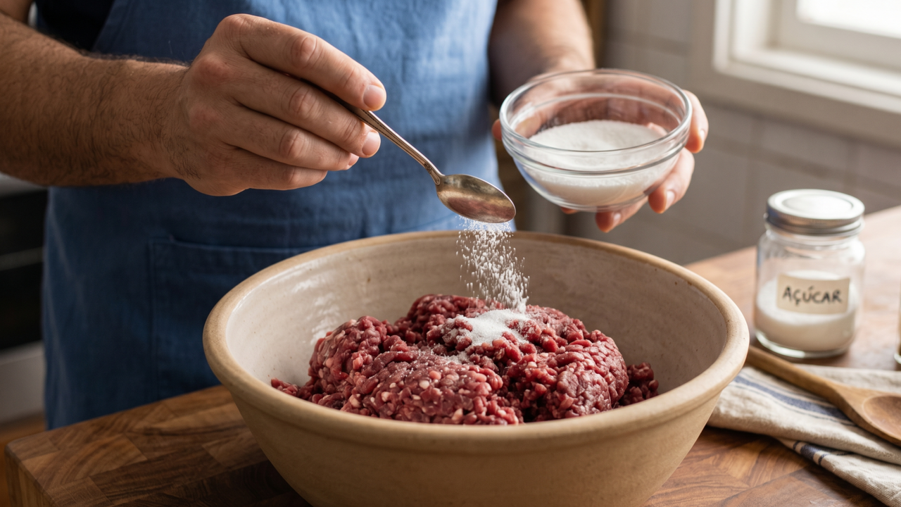 Adicionar uma pequena pitada de açúcar durante o preparo da carne moída é um segredo culinário antigo que transforma o sabor final de pratos cotidianos. Esse ingrediente simples ajuda a equilibrar a acidez natural e potencializa a caramelização das proteínas no fogo alto. Entender a ciência por trás desse hábito permite elevar o nível das refeições preparadas em casa.